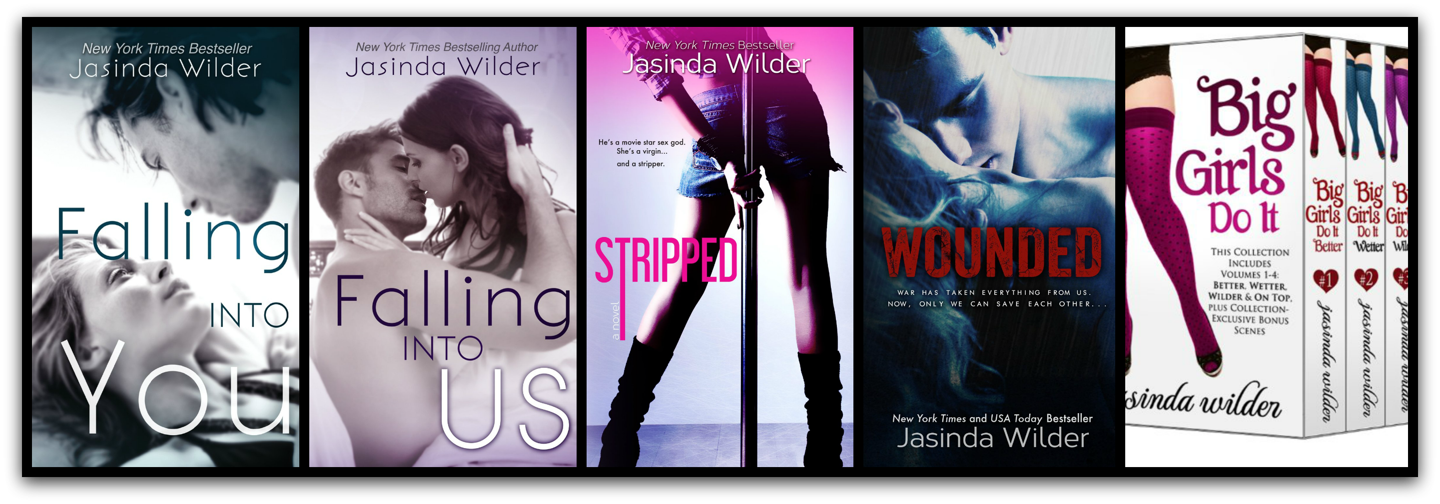 New York Times and USA Today bestselling author Jasinda Wilder is a Michigan native with a penchant for titillating tales about sexy men and strong women. When she’s not writing, she’s probably shopping, baking, or reading.