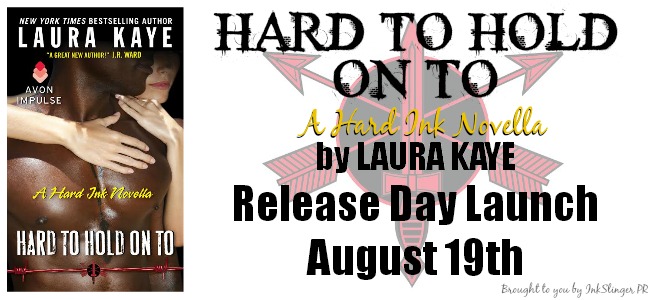 We are so excited to bring you the Release Day Launch for Laura Kaye’s HARD TO HOLD ON TO! HARD TO HOLD ON TO is a Contemporary Romance filled with suspense and is a novella in the Hard Ink Series, published by Avon Impulse (an imprint of HarperCollins). And if this novella weren’t hot enough on its own, Laura is donating 100% of her proceeds from the first two weeks’ sales to a national non-profit organization that assists veterans transitioning back to civilian life!!