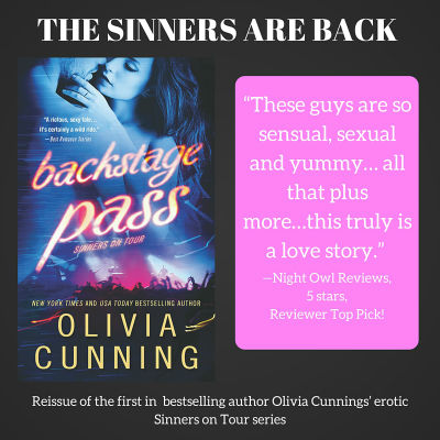 Olivia Cunning is my rock star/erotica queen. I absolutely adore her Sinners on Tour series, and I’m loving the spinoff series, Exodus End. You don’t necessarily have to read Sinners before Exodus End, but I highly recommend it. For Outsider, I definitely suggest you read at least Double Time, since that is Reagan, Trey, and Ethan’s first book. Their story continues in Outsider – and if you loved them in the first place, get ready for more smokin’ hot threesomes with them!